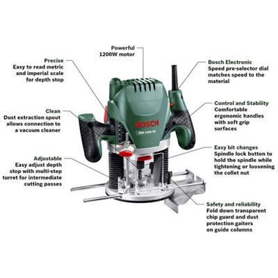This plunge router is great for pattern and groove cutting, trimming and shaping, chamfering in hard and soft wood.