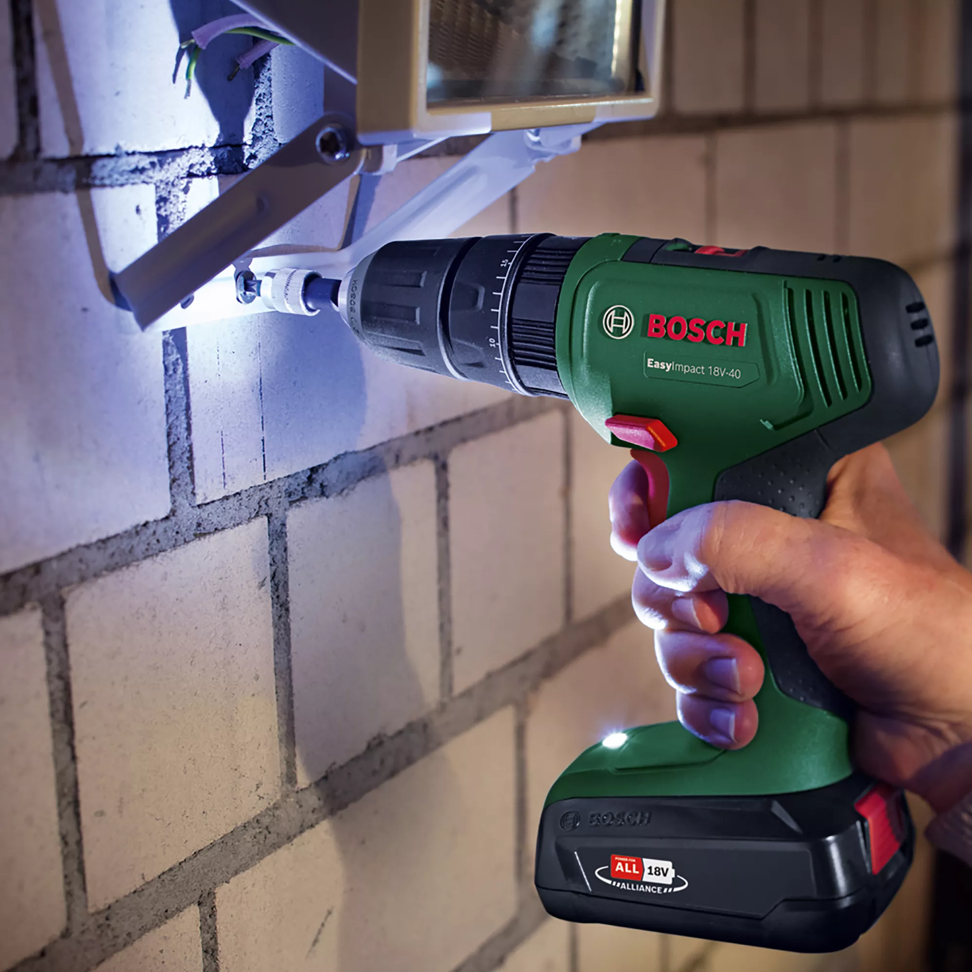 Effortless and flexible screwdriving, drilling, or impact drilling. This cordless EasyImpact 18V-40 combi drill is the flexible all-rounder for an array of drilling and fastening jobs.