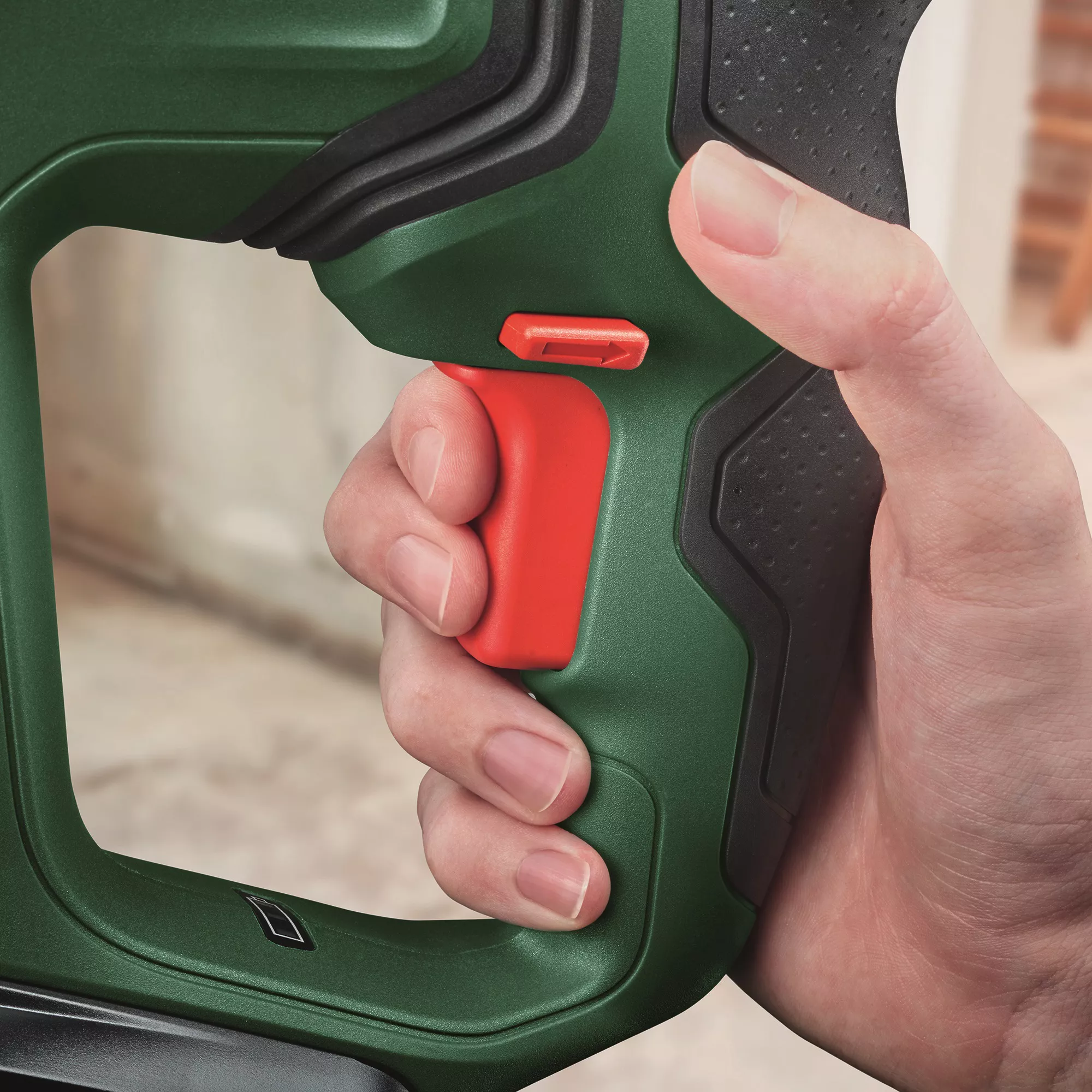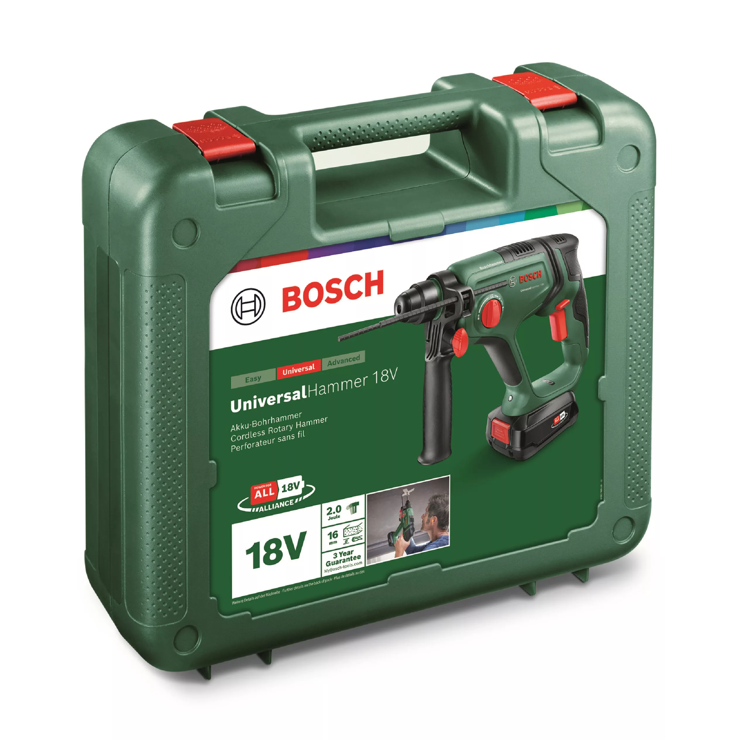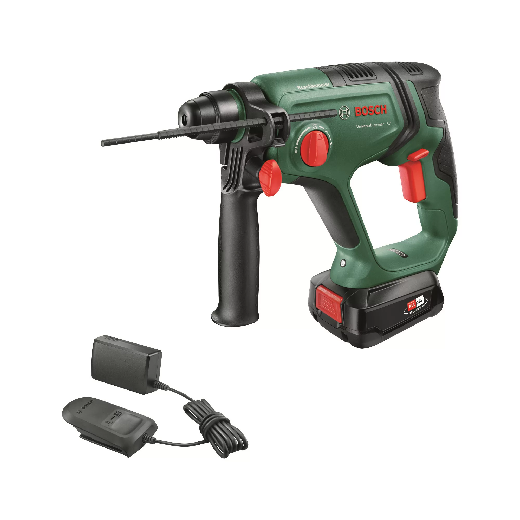 This cordless powerhouse puts the pleasure back into drilling thanks to its combination of high-impact force, light handling, and flexibility. It propels a 2.0J pneumatic Bosch hammer mechanism that is ideal for drilling holes up to ∅ 16mm into concrete, with an SDS plus drill bit. This impressive force also knocks down wall tiles and chisels cable ducts. For less fatigue on long jobs, DIY enthusiasts will appreciate the lightweight, compact hammer size. And with the vibration and rotation control, the tool shakes less and is more stable.