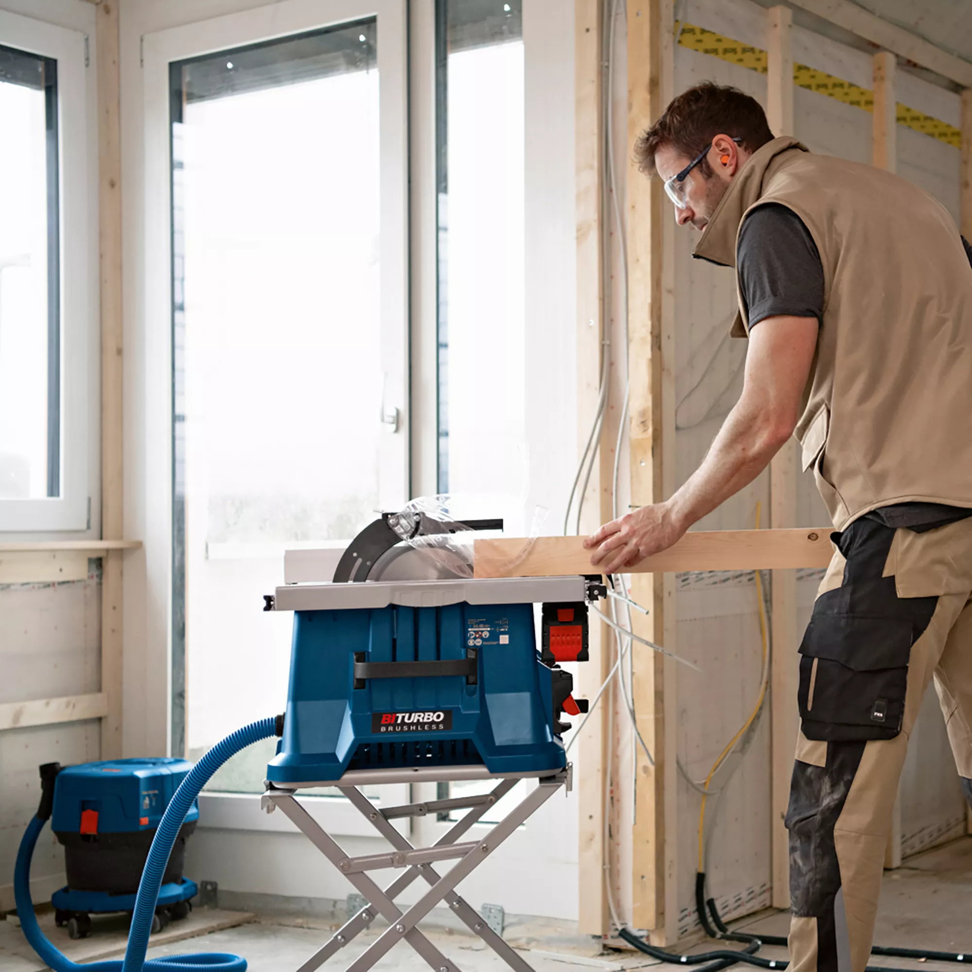 The compact GTS 18V-216 Professional BITURBO table saw with 70mm cutting height combines high performance with full mobility.