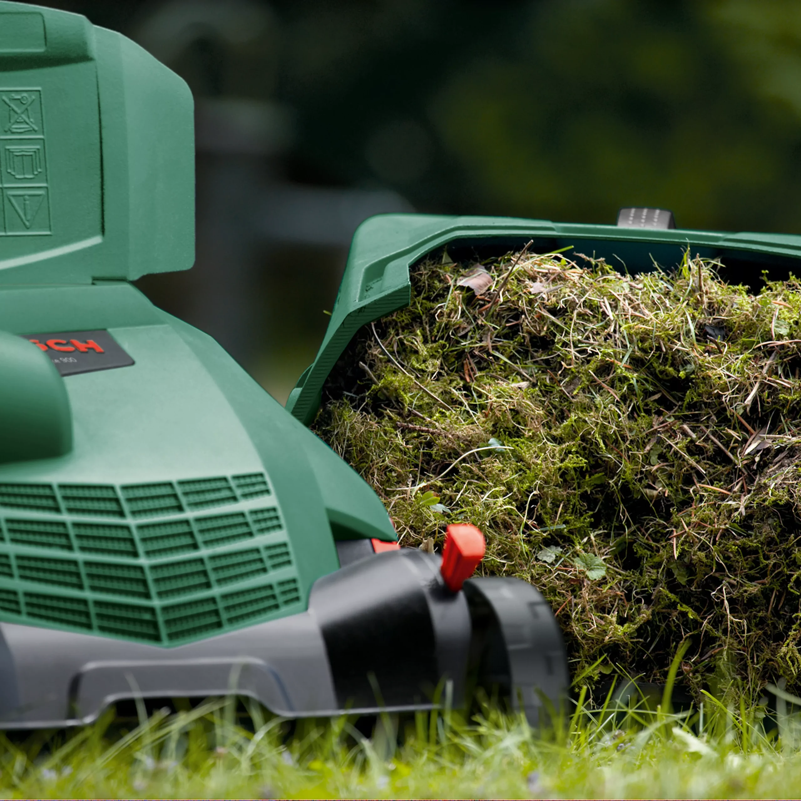 Achieve excellent results effortlessly. Perfect for pre-season and end of season lawn maintenance. This versatile corded lawnraker provides excellent all-year-round results, delivering fast and effective moss and thatch removal thanks for the jet-collect system. The 4-position operating heights can be adjusted easily for both light and heavier applications, including leaf collection. Double-fold handles and stackable collection box makes storage easy, even in small spaces.