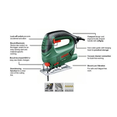This corded jigsaw is ideal cutting precise curves and straight lines. Bosch SDS ensures effortless and safe saw blade changes within seconds without the need for additional tools