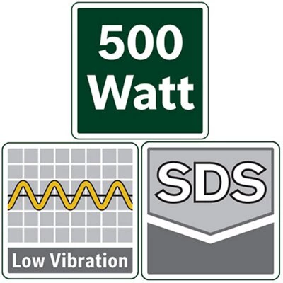 - Bosch “Low Vibration” ensures minimal vibrations and safe and convenient working with linear mass balance and ergonomic softgrip