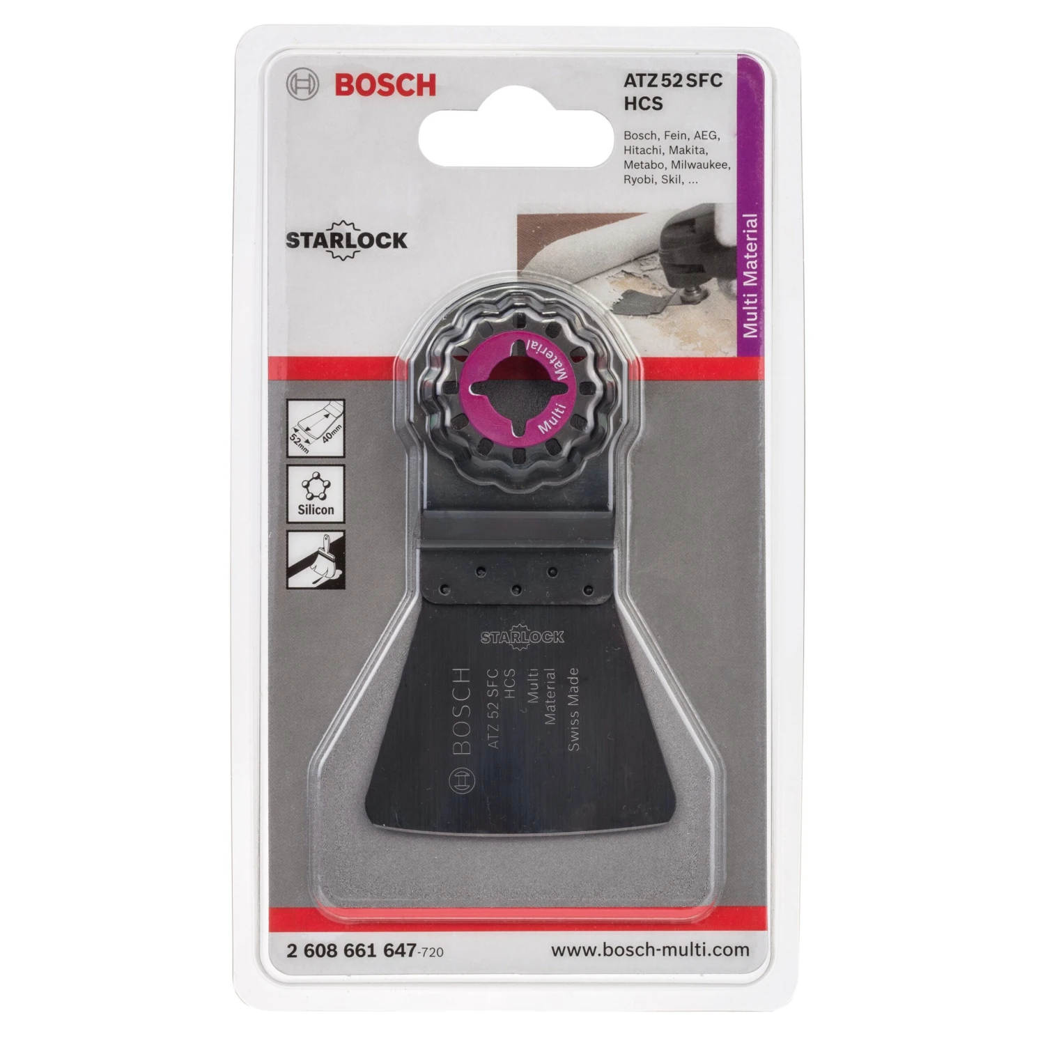 This flexible scraper blade from Bosch is compatible with all oscillating interface system (ois) multi tools and is suitable for soft carpet adhesive residues, paint residues and silicon joints.