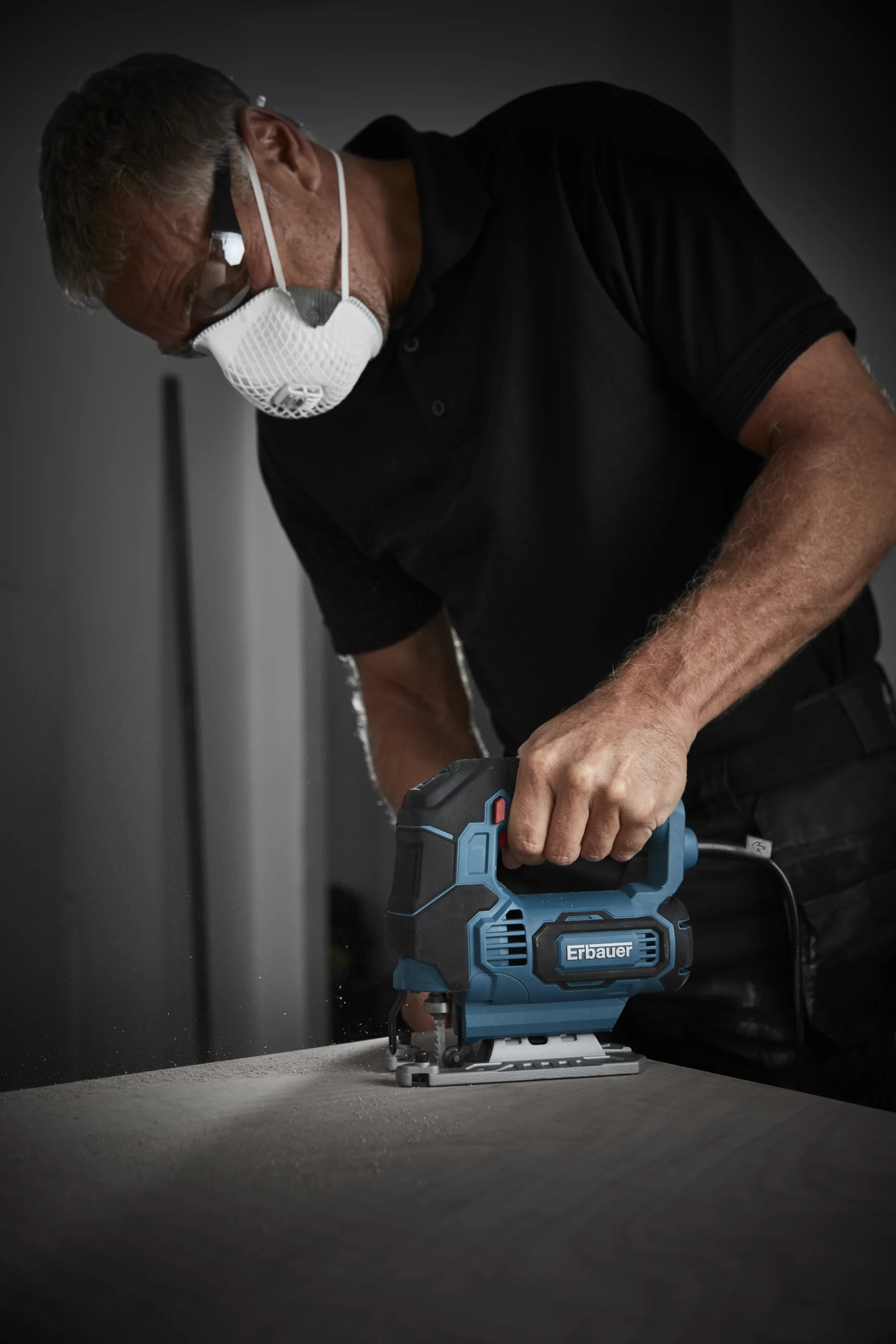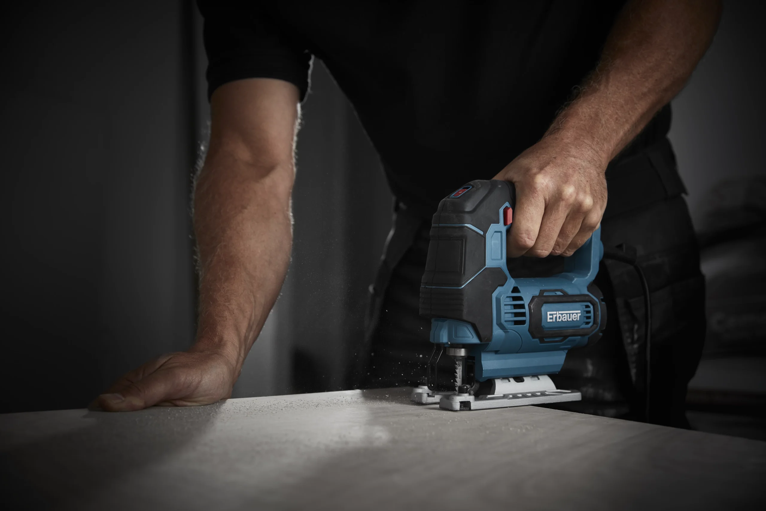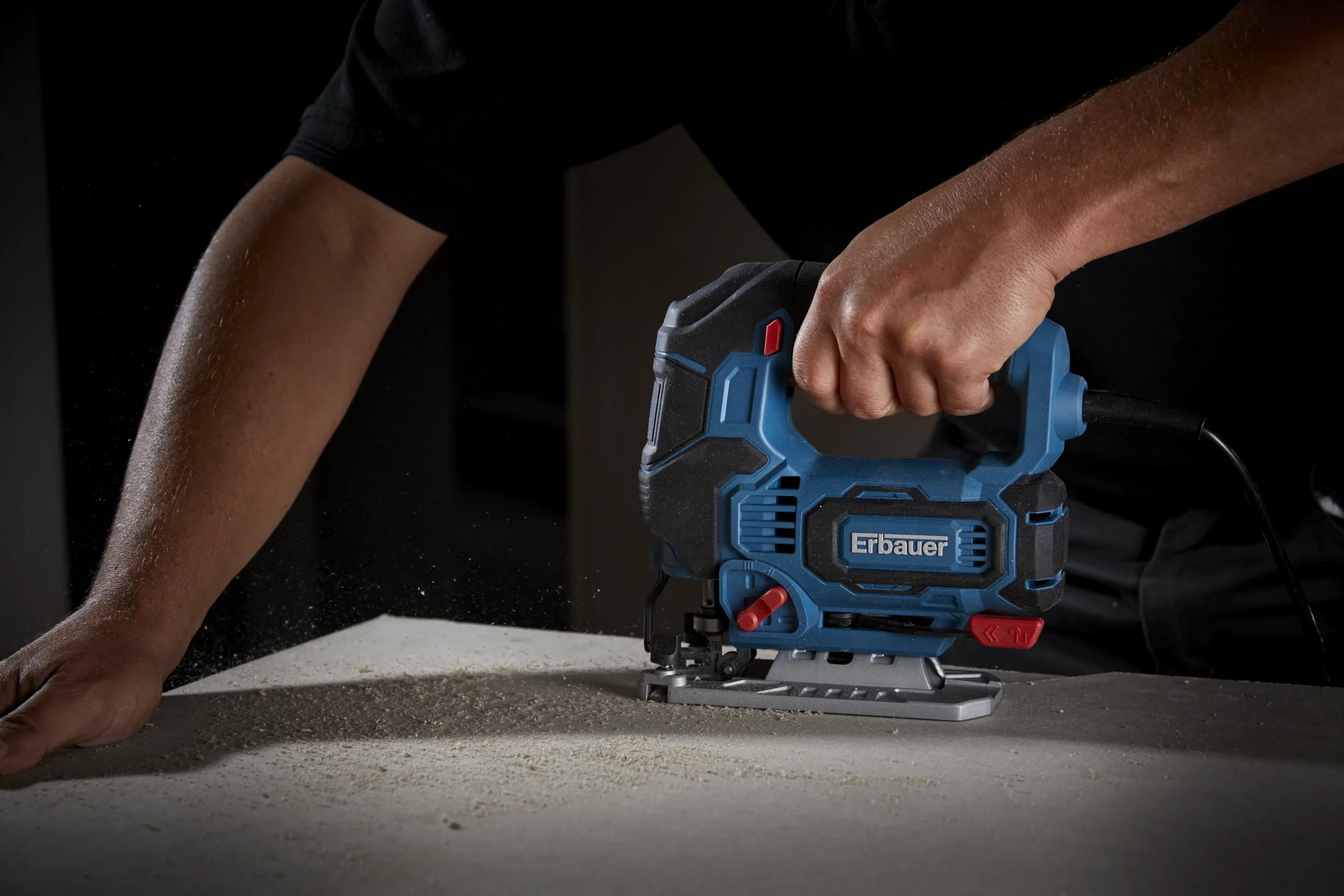 - Single pendulum jigsaw from Erbauer features an aluminium base and rubber handle