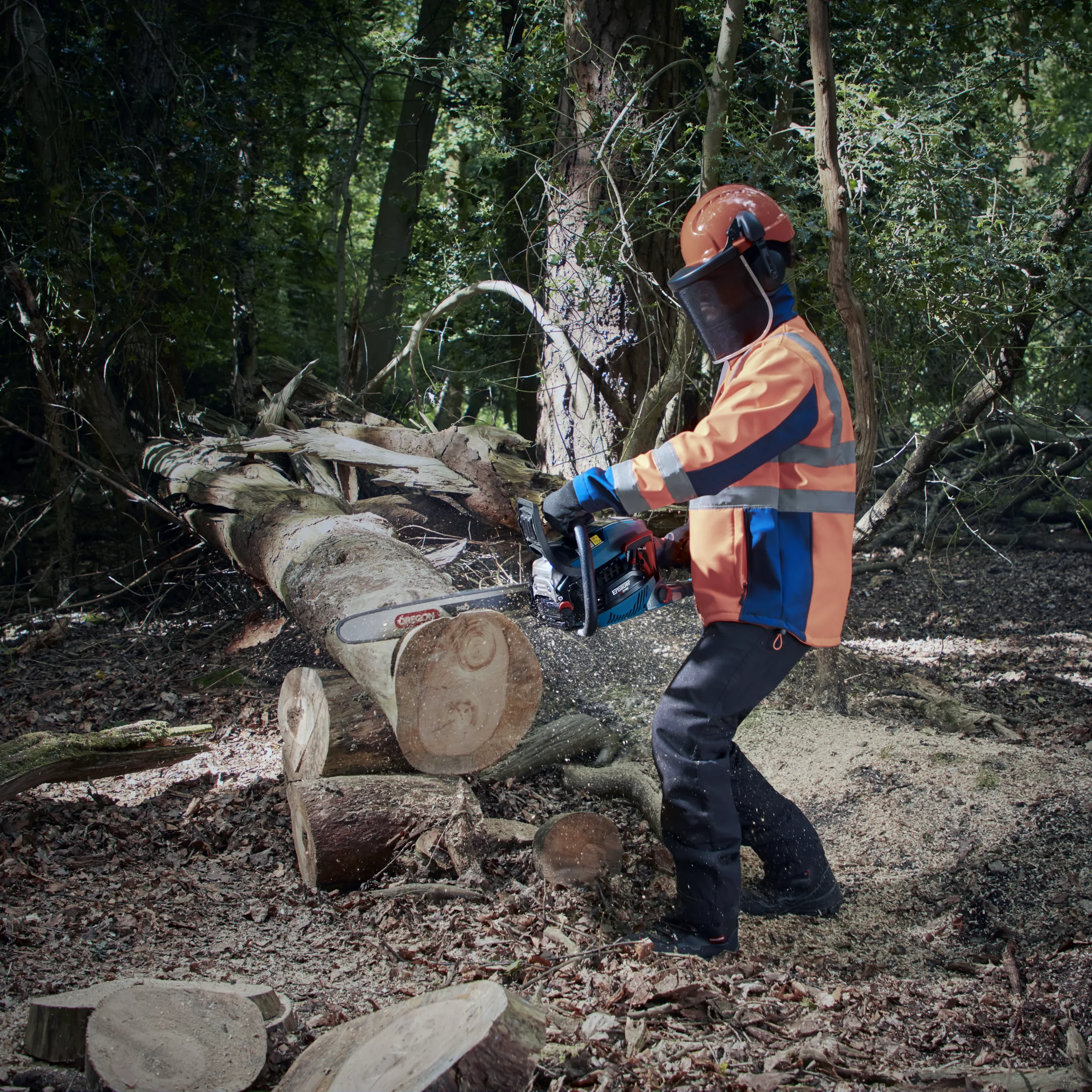 - Heavy duty carry bag with shoulder strap, for protection, and convenient storage of the saw, oils and spare parts