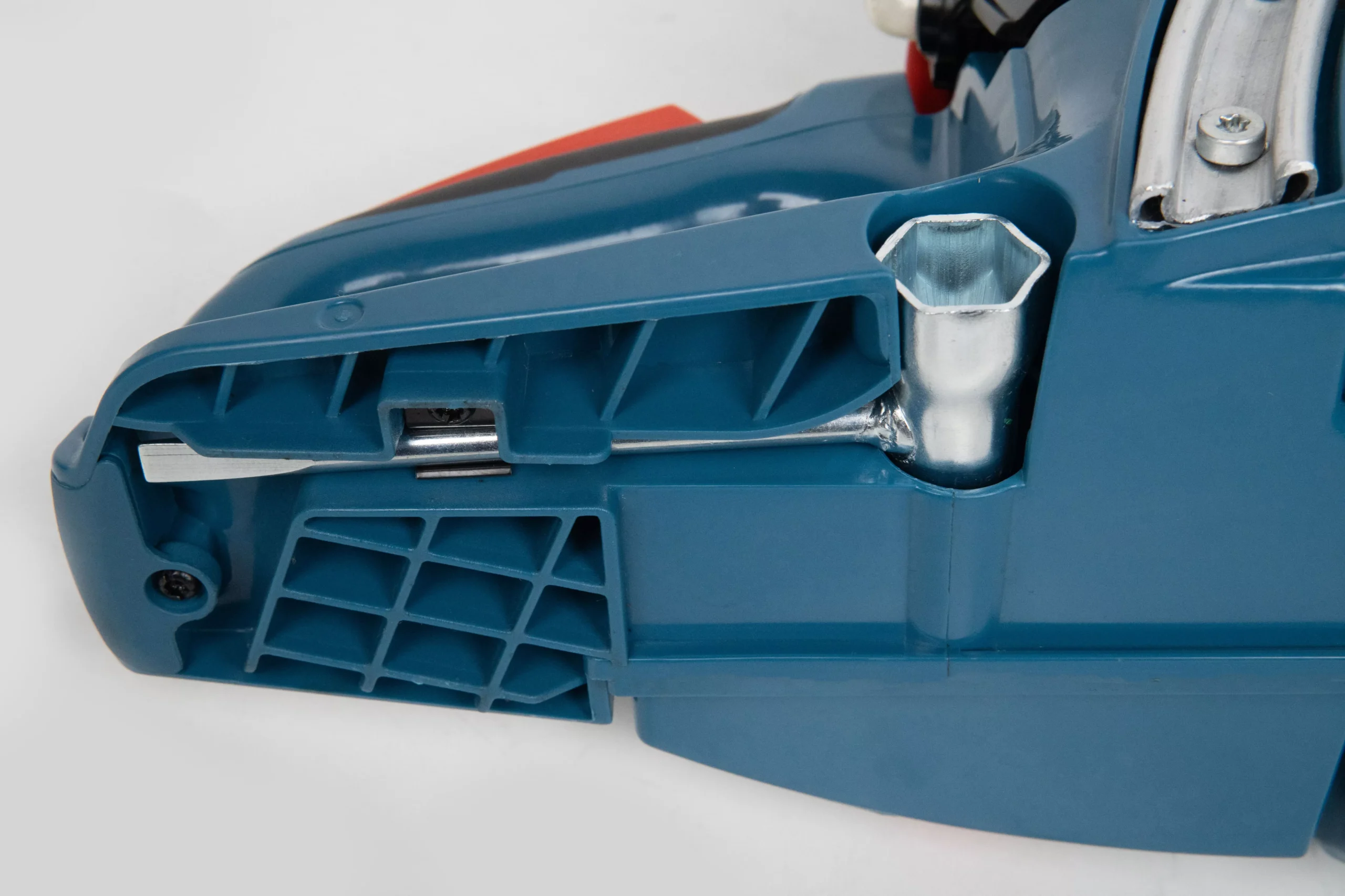 - Bar tensioning nuts held within the chain cover will not get lost when adjusting or removing the bar for chain tightening or cleaning