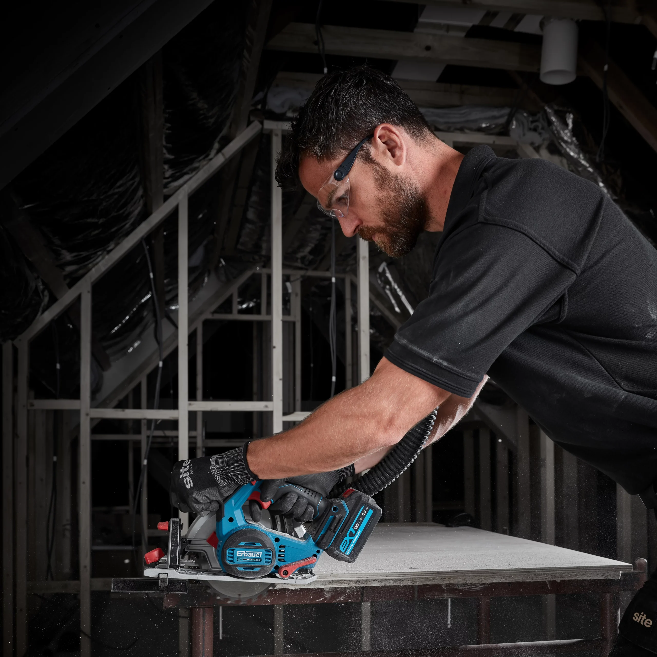 The Erbauer 18V Circ saw with brushless motor is compatible with all Erbauer EXT 18V batteries and chargers and features a soft grip handle to make it comfortable to use.