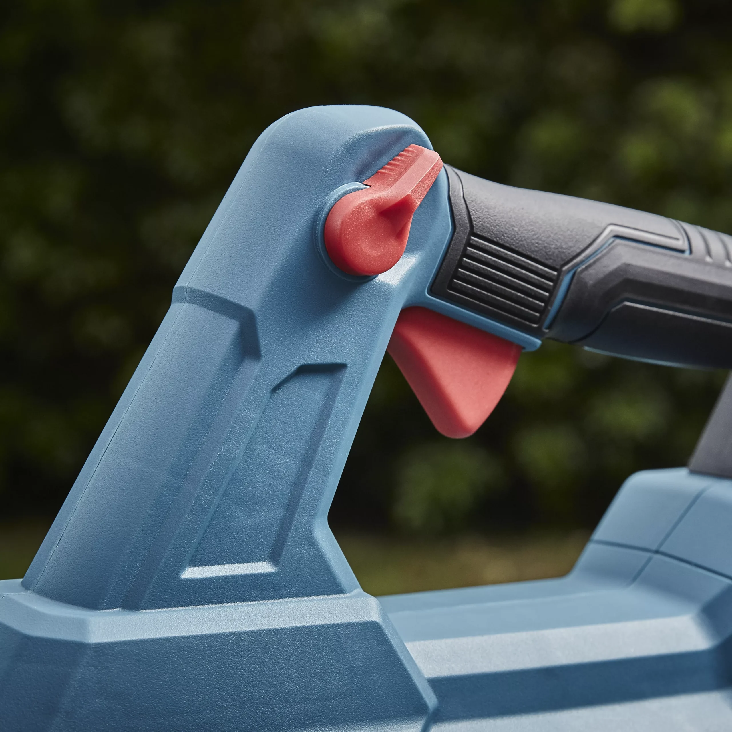 This garden blower features a strong flow rate and airflow speed which quickly and easily clears debris from hard surfaces.