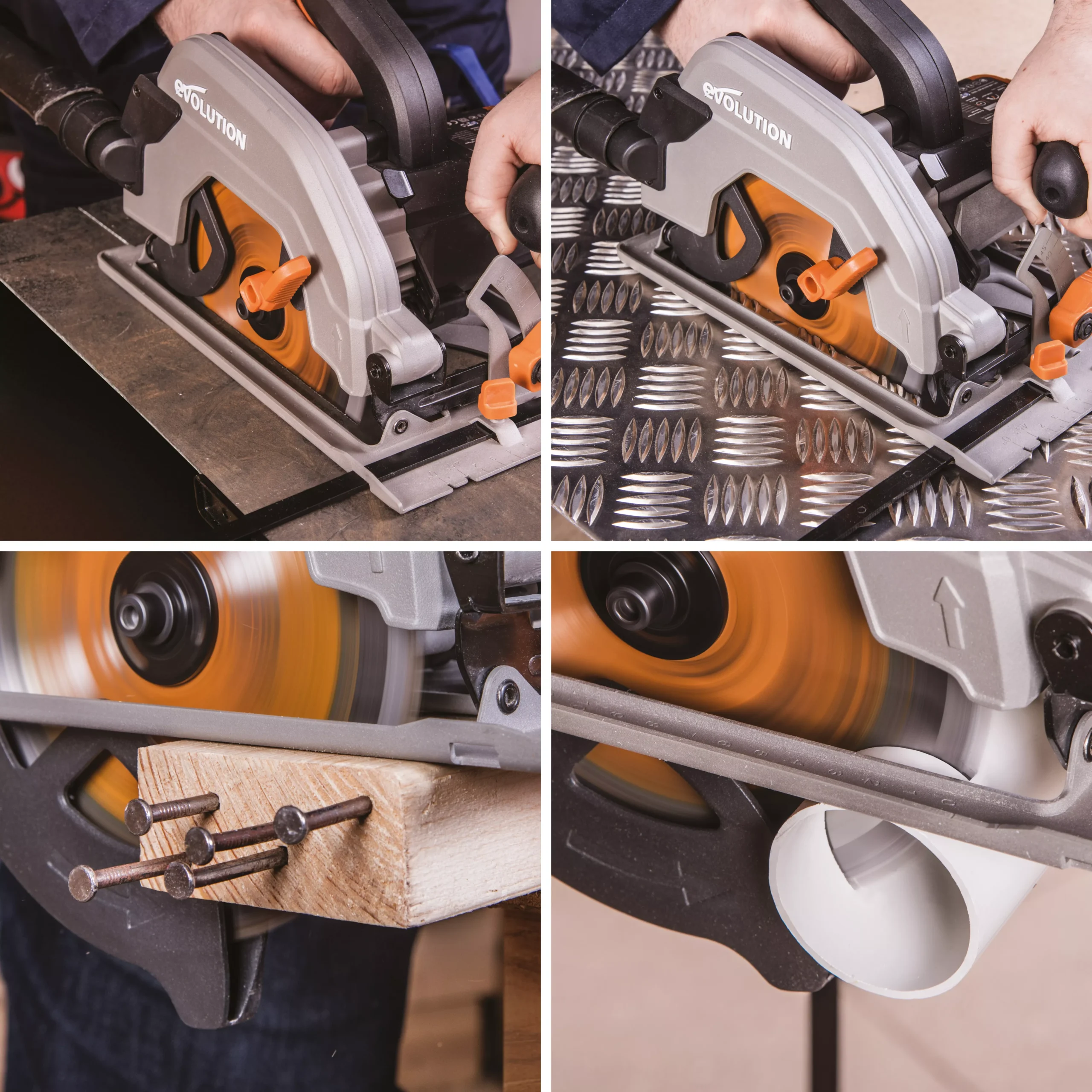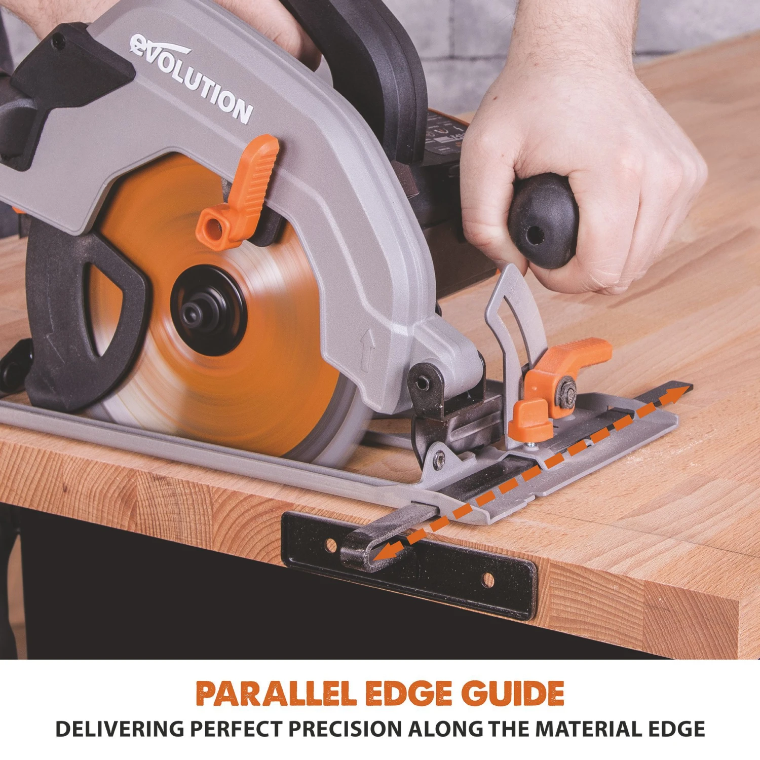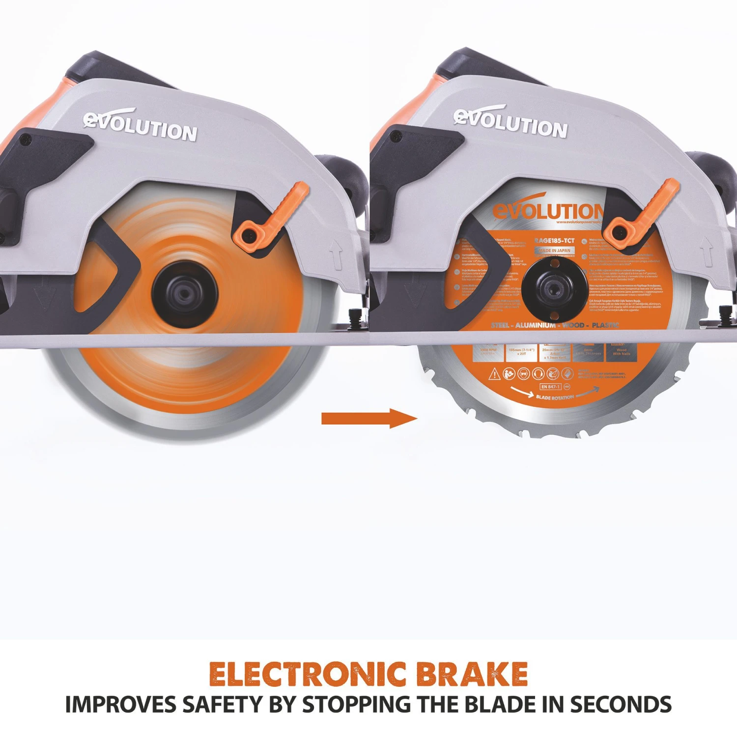 - Electric blade brake stops the blade in seconds for additional safety. Backed by Evolution’s 3 year limited warranty