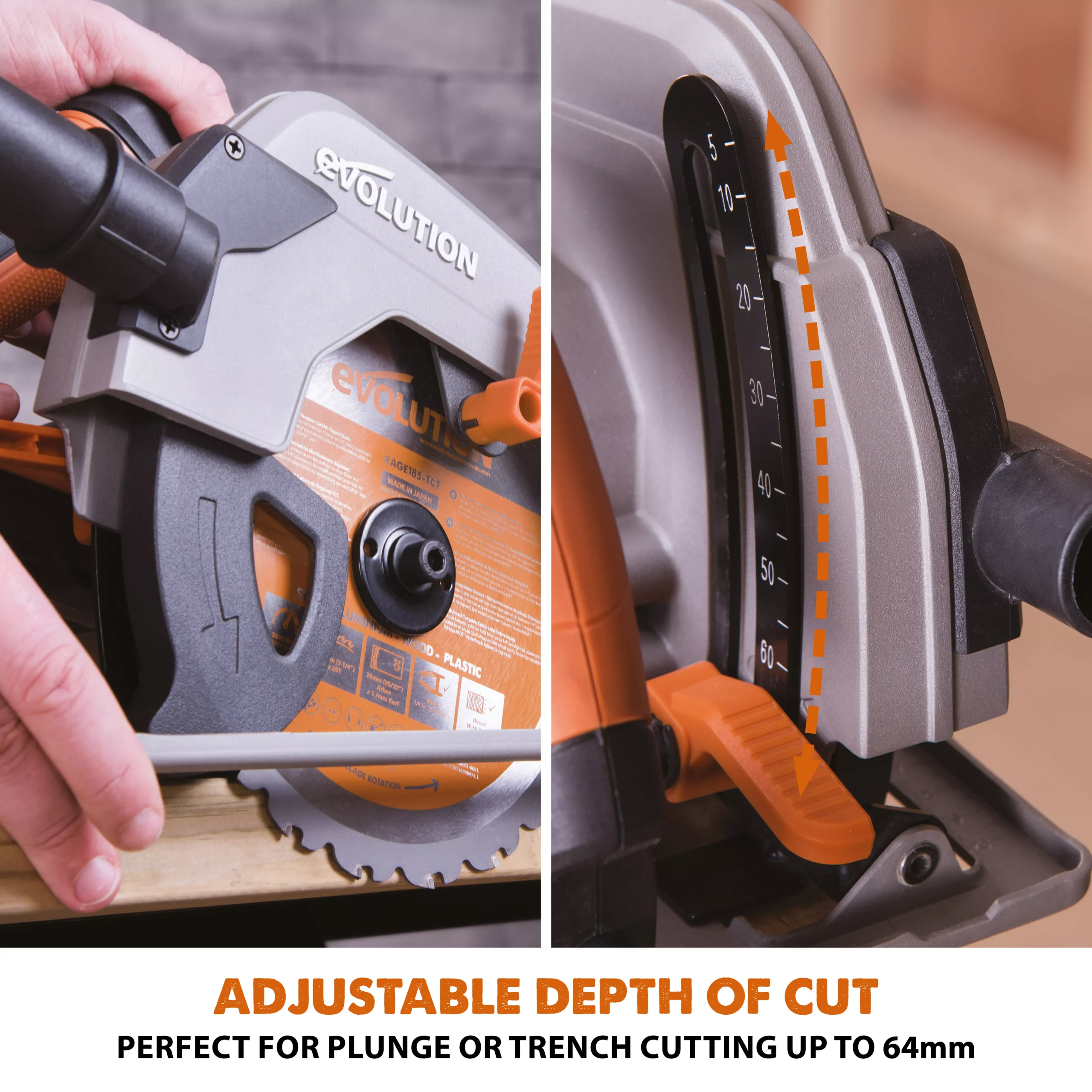 - Comes with 185mm multi-material TCT blade, dust port adaptor, dust hose adaptor and parallel edge guide.