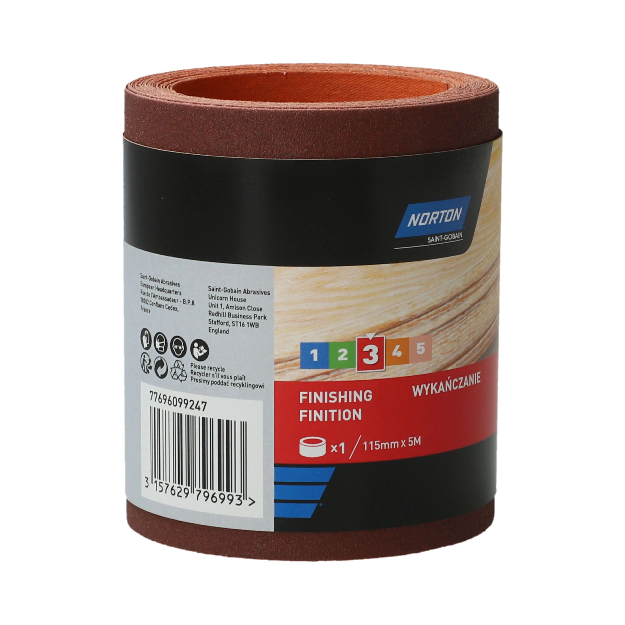 This fine 120 grit, 115mm x 5m wood sandpaper roll from Norton, is suitable for finishing on wood. It is ideal for hand sanding, for use with a block or can be cut to shape for use with a power tool.
