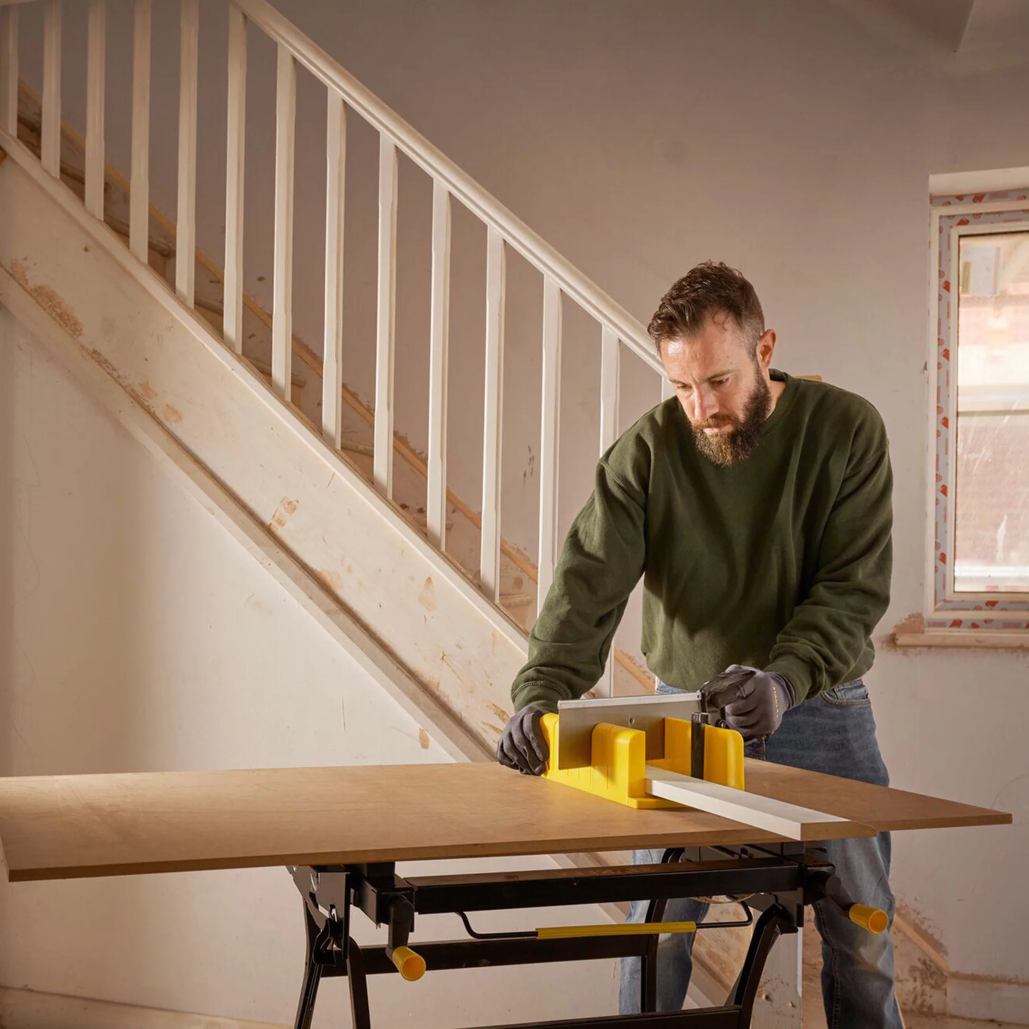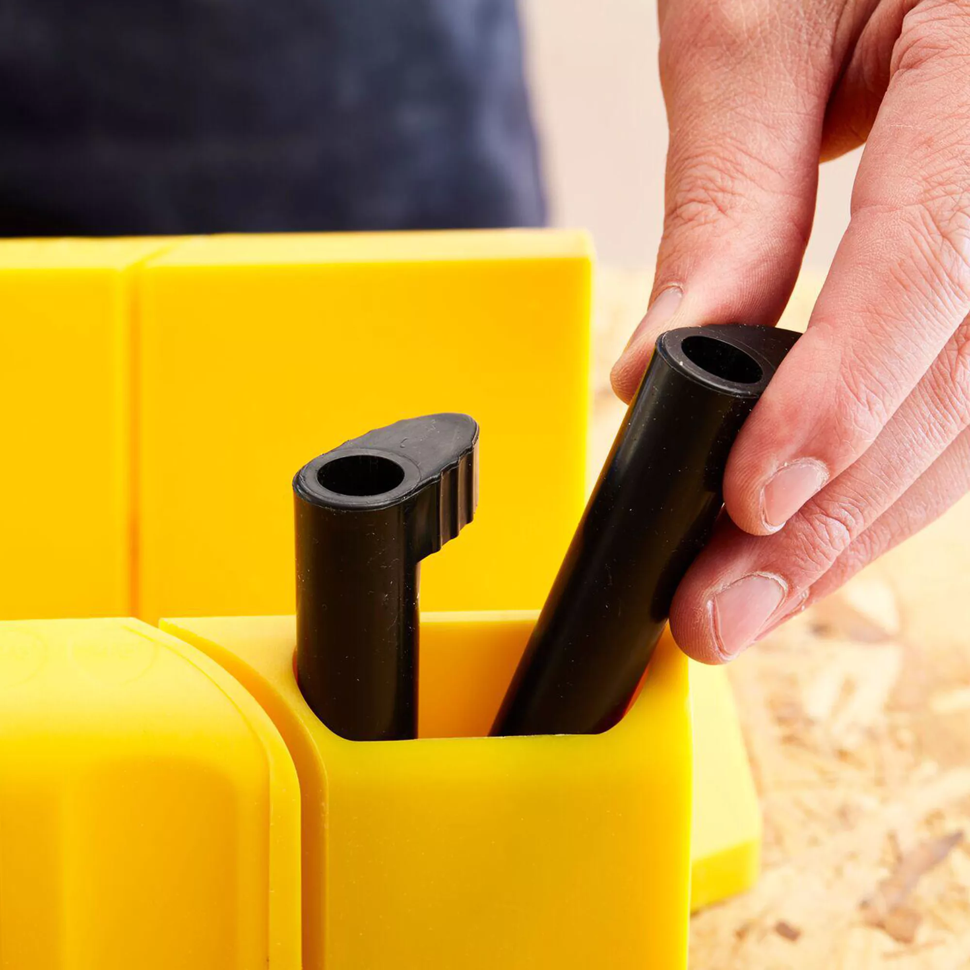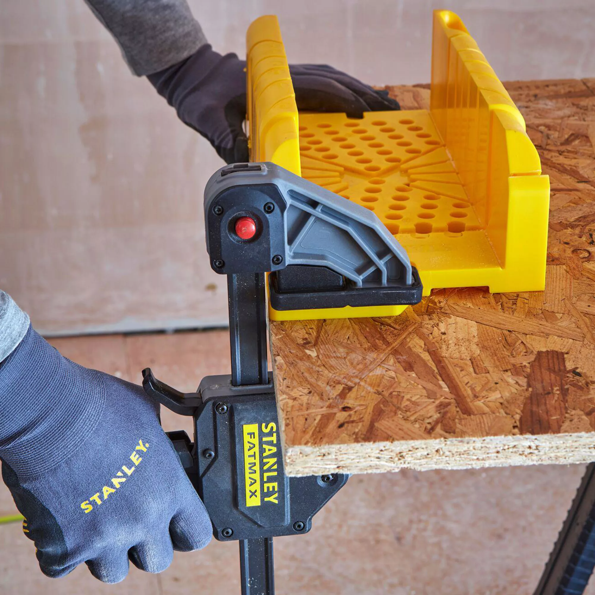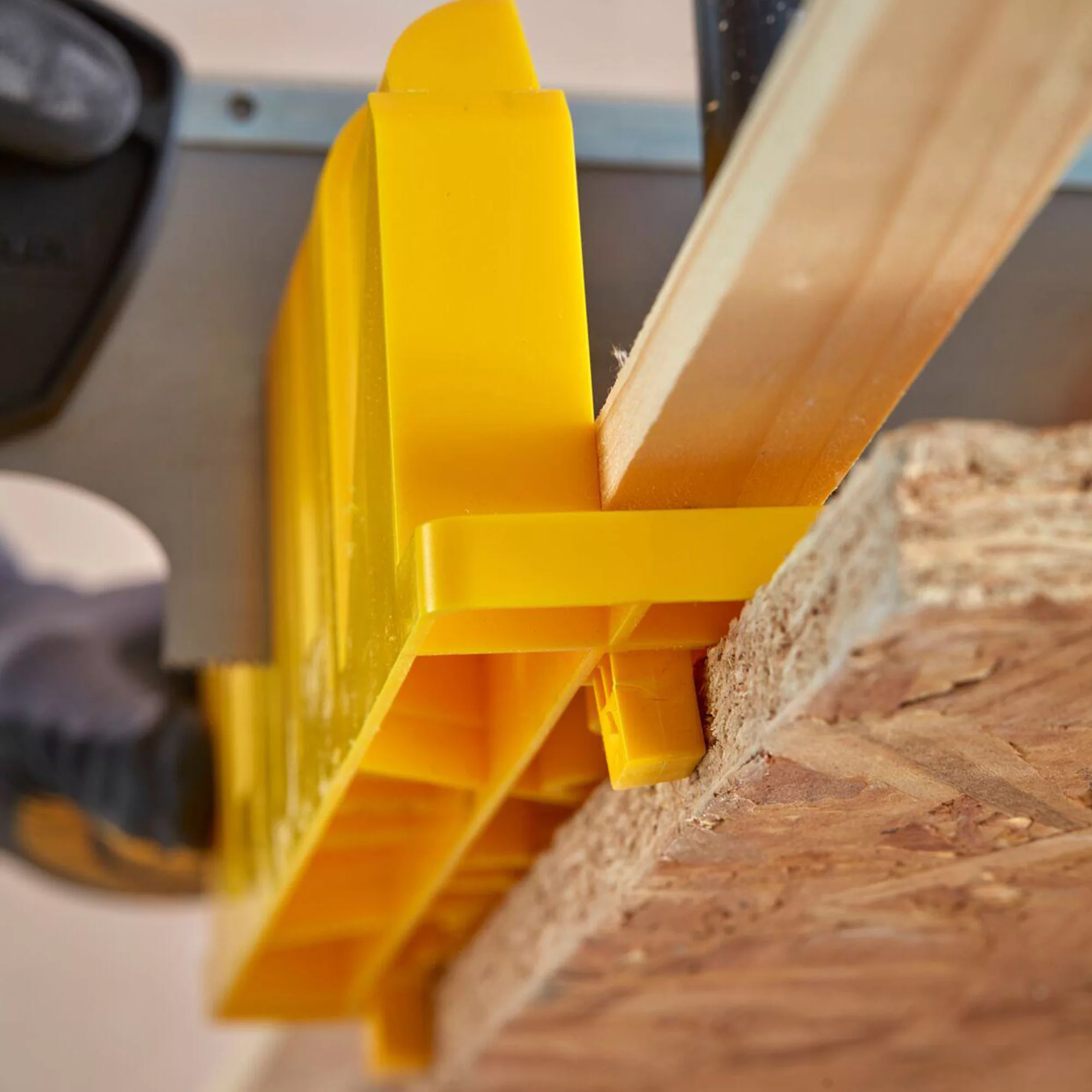The Stanley mitre box features 90° and 45° mitre slots as well as 22.5° slots for octagon shapes. Rubber feet help hold the unit in place and prevents box slippage.