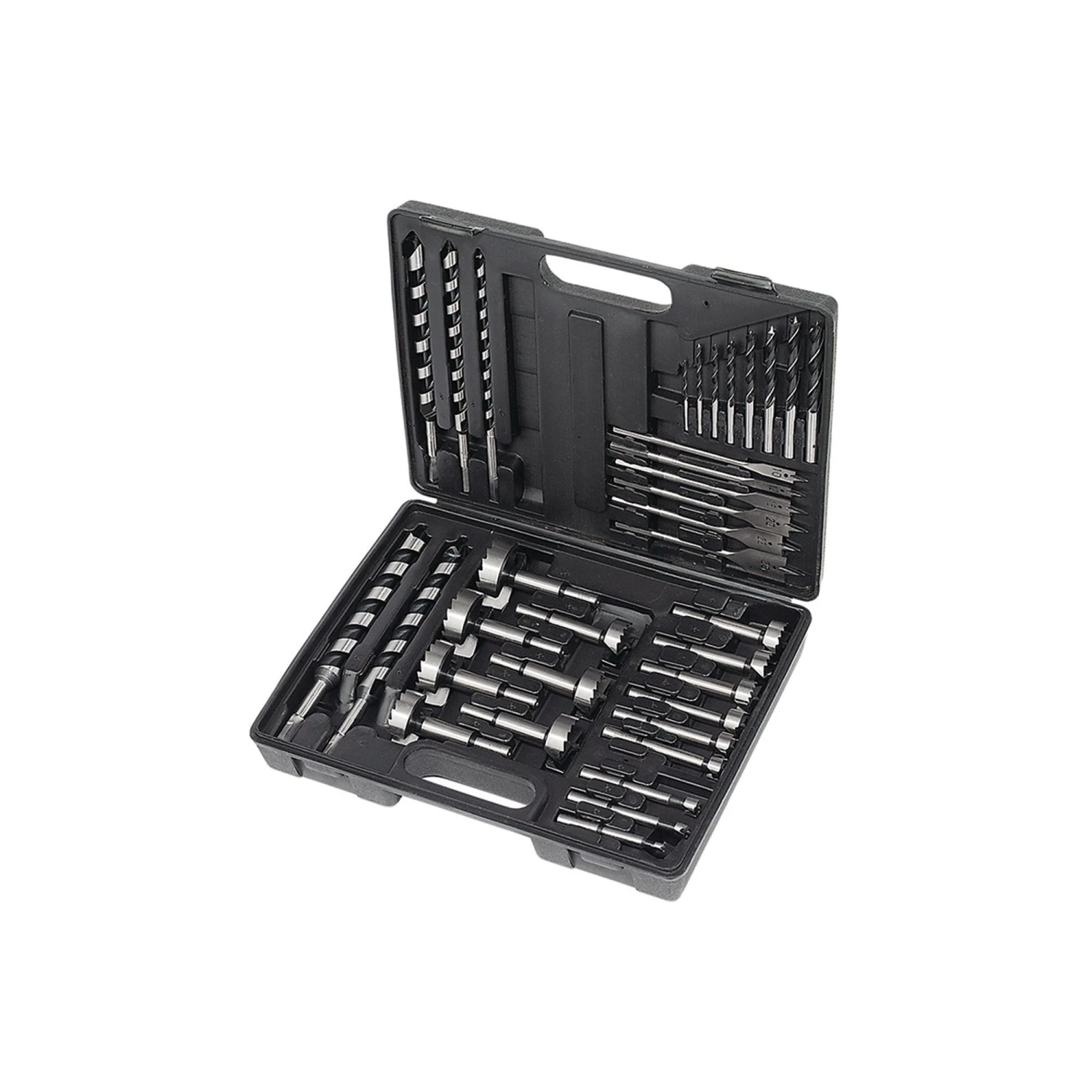 - Includes – 16x forstner bits (6mm, 10mm, 12mm, 16mm, 20mm, 22mm, 25mm, 28mm, 32mm, 35mm, 38mm, 41mm, 45mm, 48mm, 51mm and 54mm), 5x auger bits (8mm, 12mm, 16mm, 18mm and 22mm), 6x flat bits (10mm, 12mm, 16mm, 18mm, 22mm and 25mm) and 8x spur-tipped drills (3mm, 4mm, 5mm, 6mm, 7mm, 8mm, 9mm and 10mm)