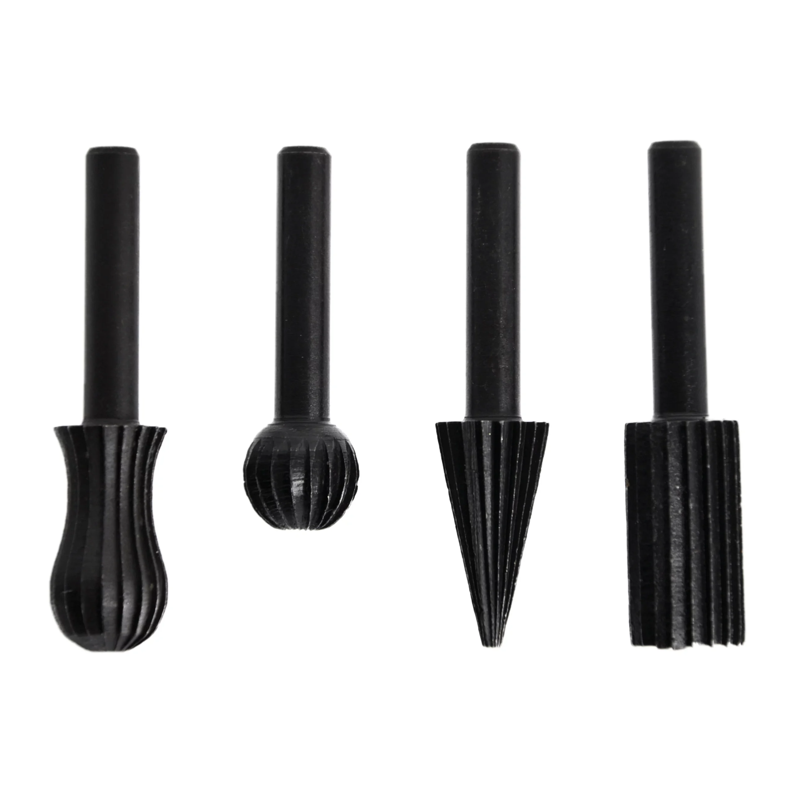 This 4 piece rasp set includes a ball, cone, cylindrical and vase rasp. Suitable for sharpening and grinding metal.